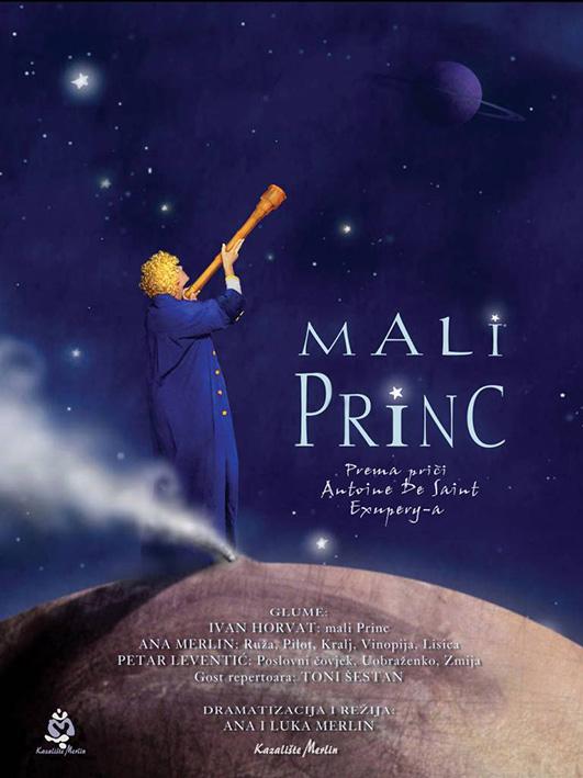 Mali princ, zagrebačkog Kazališta Merlin, dinamična je predstava za ljude u malim i velikim cipelama, koja će svoju publiku zasigurno uvući u bezvremenu priču Antoinea de Saint-Exuperyja o malenom istraživaču čija su nepredvidiva lutanja svemirom prepuna iznenađenja i velikih po(r)uka. U ovoj nagrađivanoj kazališnoj igri, koju su zajednički režirali Ana i Luka Merlin, glume Ivan Horvat, Ana Merlin i Petar Leventić.