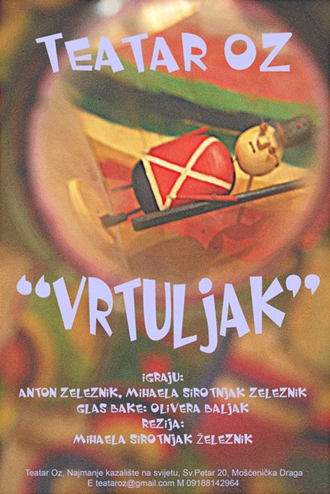 Kao posljednji dječji program na repertoaru je Vrtuljak, prava poslastica za male kazališne sladokusce. Naime, radi se o predstavi inspiriranoj sjećanjima na djetinjstvo i poznatom Andersenovom bajkom Kositreni vojnik, a koja kroz interakciju s mališanima u fokus stavlja odnose među ljudima, uvlačeći pritom publiku u vrtlog osjećaja i neiskvarenih životnih vrijednosti. Tu maštovitu lutkarsko-pripovjedačku fantaziju, koja spaja lutkarstvo, animaciju, teatar sjena, vizualiziranu radio dramu, pjevanje i sviranje, zajednički su režirali te u njoj glume Mihaela Sirotnjak Železnik i Anton Železnik.