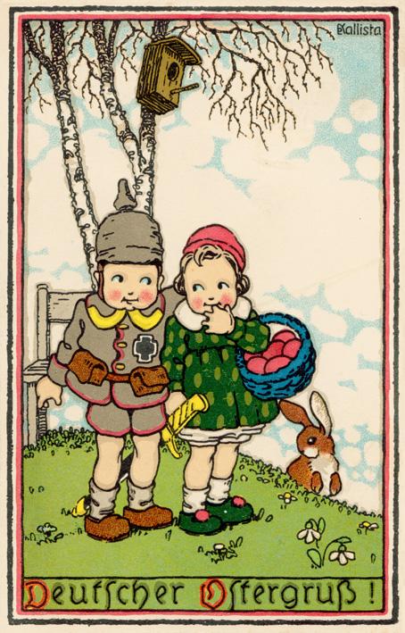 U odnosu na prethodnu izložbu, razglednice su ustupile mjesto čestitkama, i to onim uskršnjim, međutim vrijeme njihova ispisivanja ostalo je isto, drugo desetljeće 20. stoljeća, usko povezano s tadašnjim ratnim zbivanjima. Njih su slali oni najneposredniji sudionici Prvog svjetskog rata koji su u jednom nemilom povijesnom trenutku bili prisiljeni stati na frontu. Razglednice i čestitke tako su postale posebna, duhovna veza s domom ostavljenim u vihoru rata, ali i svojevrsni medij za prenošenje poruka nade jasno usmjerenih prema boljoj i sretnijoj sutrašnjici. To nam možda najbolje mogu demonstrirati upravo uskršnje razglednice obzirom na koncept spasenja koji je dobio jednu novu, iako ne i neočekivanu, vizuru. Naime, promišljanja o vječnom životu ovdje su pretvorena u želju za mirom, što nam ponegdje dokazuje i motiv maslinove grane, dok simbole proljeća često utopljene u tipičnu uskršnju ikonografiju, možemo tumačiti kao priziv rađanja nekog novog, puno boljeg svijeta. Sveprisutna patnja s pravom je prizvala primordijalnu svetačku osobinu na što nam ukazuje rijedak, ali ipak utjelovljen, motiv palmine grane, dok u lovoru ipak naslućujemo težnju za pobjedom. Mnoge razglednice s obiteljskim scenama, ljubavničkim maštarijama, dječjim motivima zorno govore u prilog težnje za uskraćenom ljubavi, dok nam satira demonstrira kako i najteže trenutke možemo prevladati uz dodir humora.