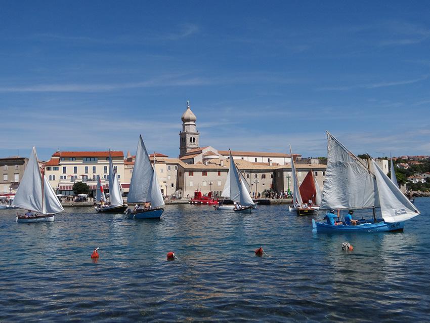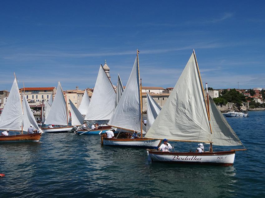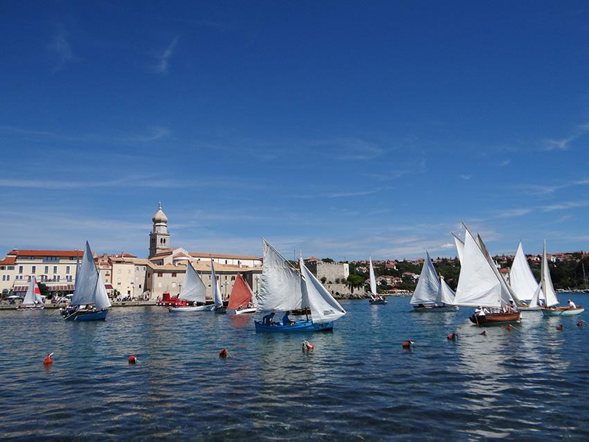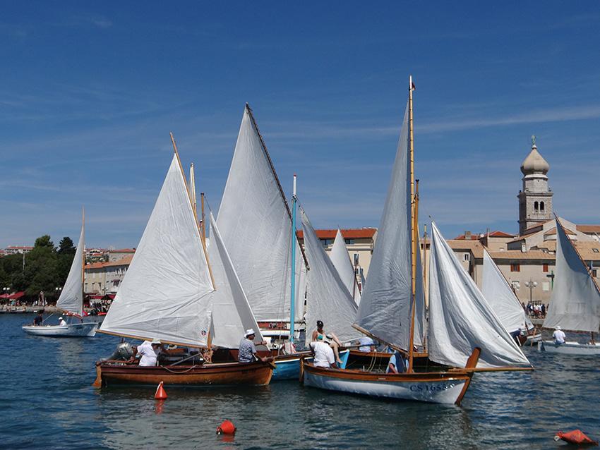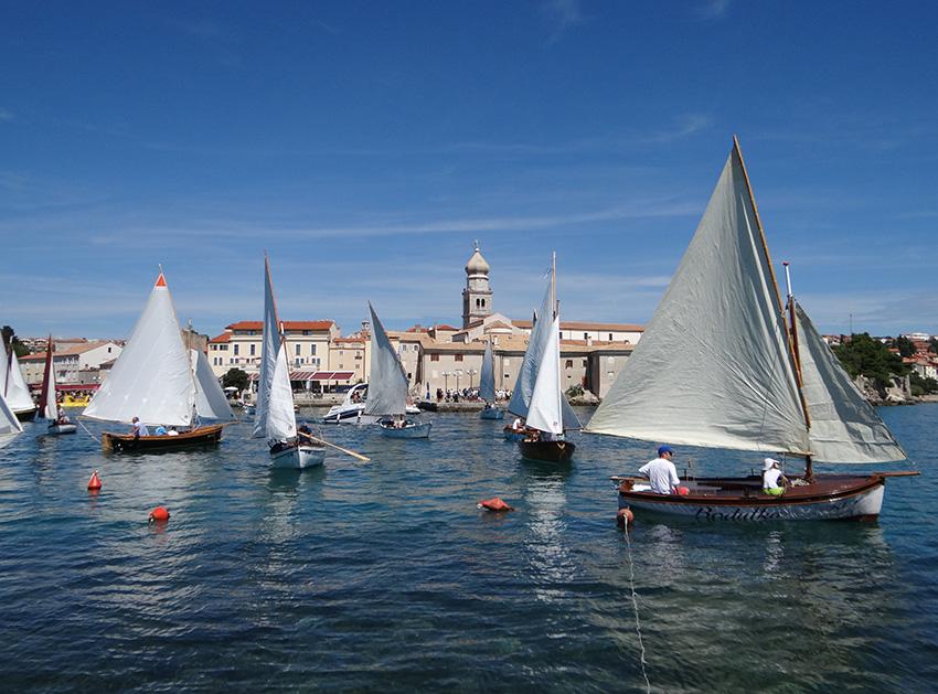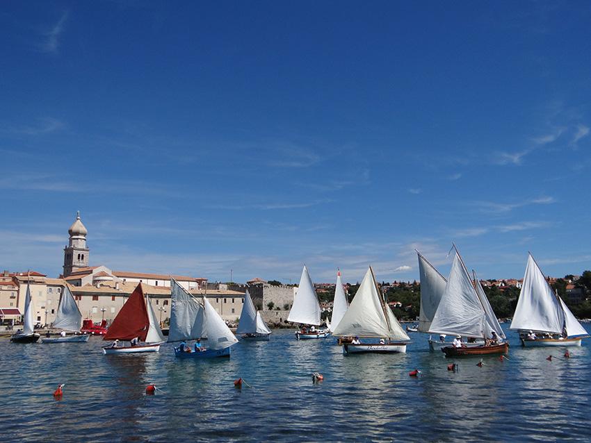 Petnaestak posada na okupljenim pasarama, gucevima, batanama, gajetama i leutima, koji nakon što su predstavljene tijekom noćnog jedrenja, svoju su krčku avanturu nastavile na samoj regati, razapevši svoja bijela jedra pred konturama drevnog grada, čime je još jednom pobuđena uspomena na vremena kada je kroćenje vjetra bila izuzetna vještina, a pomorstvo temelj ekonomije. Jer opstanak na otoku bio je gotovo nezamisliv bez ribolova, bez prijevoza maslinovog ulja ili vina, bez pomorstva. No naš grad i danas živi svoju tradiciju u očuvanoj povijesnoj jezgri, a njegovom lukom i danas prolaze brodovi dovodeći brojne posjetitelje željne istinskog doživljaja povijesnog grada. Zato je doživljaj regate s Gradske rive, krčkih zidina ili Frankopanskog kaštela, bio uistinu poseban, kao što je poseban i Plav, najstariji jedriličarski klub na istočnojadranskoj obali koji ove godine slavi zavidnu 140. obljetnicu, a kojeg je, uz podršku Grada Krka, Turističke zajednice Grada Krka, Županijske lučke uprave Krk, Komunalnog društva Vecla i brojnih sponzora, zapala ta čast da preuzme organizaciju ove dvodnevne revije tradicijskih plovila, što je naposljetku zaključena, prigodnim programom uz podjelu nagrada najboljim jedriličarima. No unatoč svome natjecateljskom karakteru, primarna zadaća Krčkih jedara, obzirom na spomenuto, ipak biva promoviranje bogate pomorske i jedriličarske tradicije, kako grada, tako i otoka Krka, zajedno s vrednovanjem svega onog što pri baštinjenju tradicijskih plovila čine brojni entuzijasti koji na najbolji mogući način predstavljaju sve ono što je ovaj kraj nekad bio, i što u konačnici još uvijek jest!