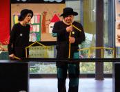 Ova kazališna igra, čiji tekst i režiju potpisuje bugarski redatelj Alexandar Ivanov poznat pod pseudonimom Sunny Sunninsky, i nakon dvadeset uzastopnih godina izvođenja scenu je iznova prepustila dvama glumcima - u našem slučaju Vjerici Vidov i Draganu Veseliću - koji su, pomažući se jedino sklopivim zidarskim metrom, mališanima vješto prenijeli bajku o Caru, pjetliću i zlatniku, i to s ciljem da im osvijeste osjećaj za pravednost. Dvoje raspoloženih protagonista - animatora, pred jednako raspoloženom publikom, tako je iznijelo priču o priči koja nema kraja i koja se ne može izmjeriti, a zanimljivo je spomenuti kako je upravo metar iskorišten kao primarni dio scenografije jer njime glumci znalački iscrtavaju scenu, kao i sve ono što sadržaj predstave zahtjeva. Prema tome, pažljivim rukovanjem tim neobičnim rekvizitom, u jednom trenutku nastaje pjetlić, da bi već u drugome imali iscrtanog kralja, ribu, žabu ili zmaja. No, čitava radnja pokrenuta je dukatom koji svome vlasniku može priuštiti sva blaga svijeta, s time da priča završava spoznajom kako se u osnovi svega nalazi krug, simbol vječnosti i beskraja, pa tako borba za dukat - između pijetla i cara - sa svime onime što on utjelovljuje, ako mu se ne odupremo (a trebali bismo), može trajati zauvijek.