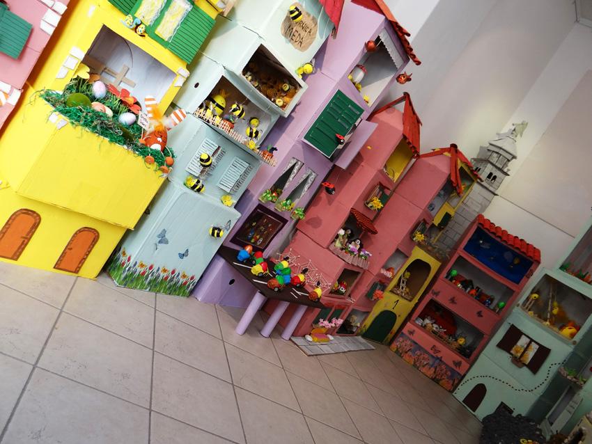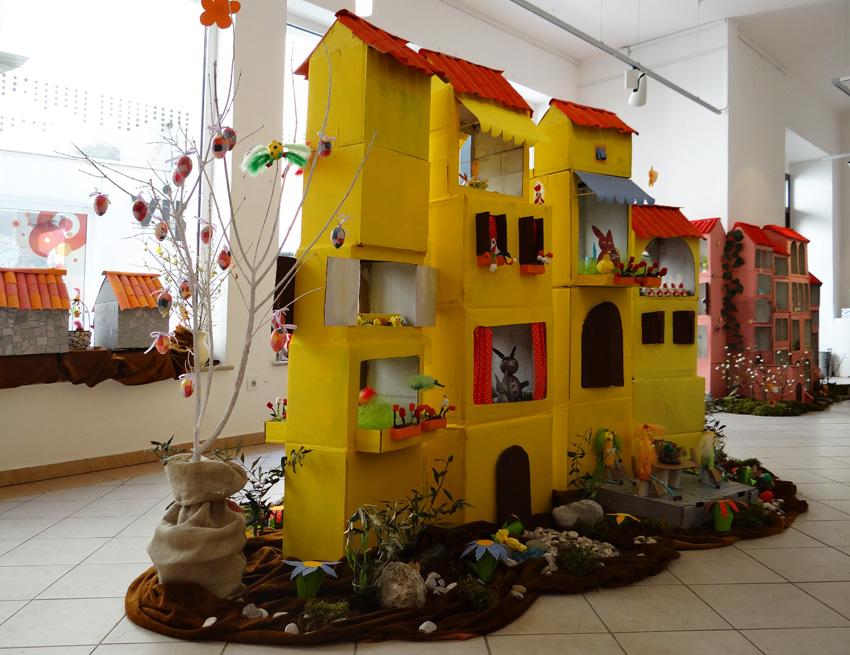 Svaki od tih vrtićkih kolektiva ove se godine predstavio posebno izrađenim šarenim kućicama, čineći tako u galerijskom prostoru pravi mali grad, ispunjenim mnogobrojnim rukotvorinama koje su inspirirane temom Uskrsa, ali i proljeća uopće.