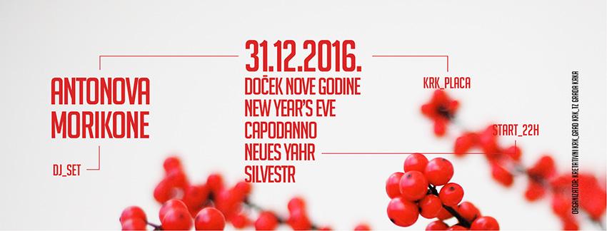 Kao i dosad, Krčani, zajedno s ostalim posjetiteljima grada, 31. prosinca, Staru će godinu na Veloj placi, točno u podne, ispratiti novogodišnjom zdravicom krčkog gradonačelnika, i to uz cjelojutarnji zabavno-glazbeni program, nakon čega od 21.00 do 02.00 sata, na istome mjestu, slijedi posve drugačiji doček Nove godine uz nastup krčkih DJ-snaga Ane Antonove i Morikonea.